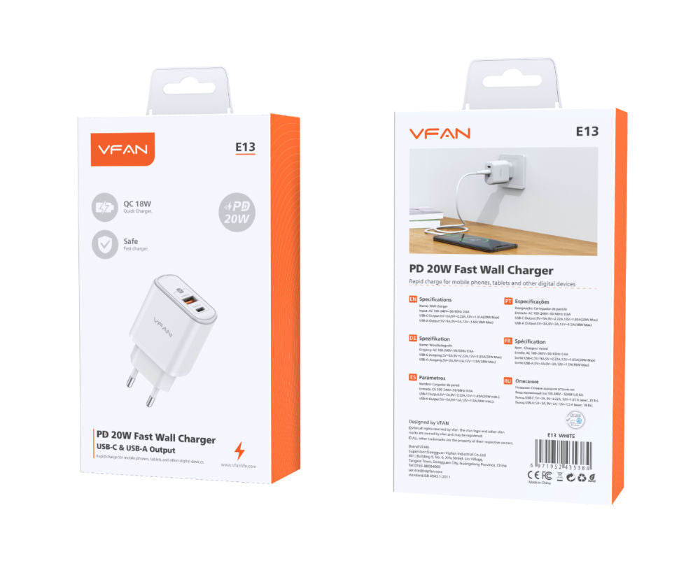 Carregador de 20W com entrada USB + Type-C. Suporta o standard de carregamento rápido PD e dispõe de circuitos específicos... Leer más...