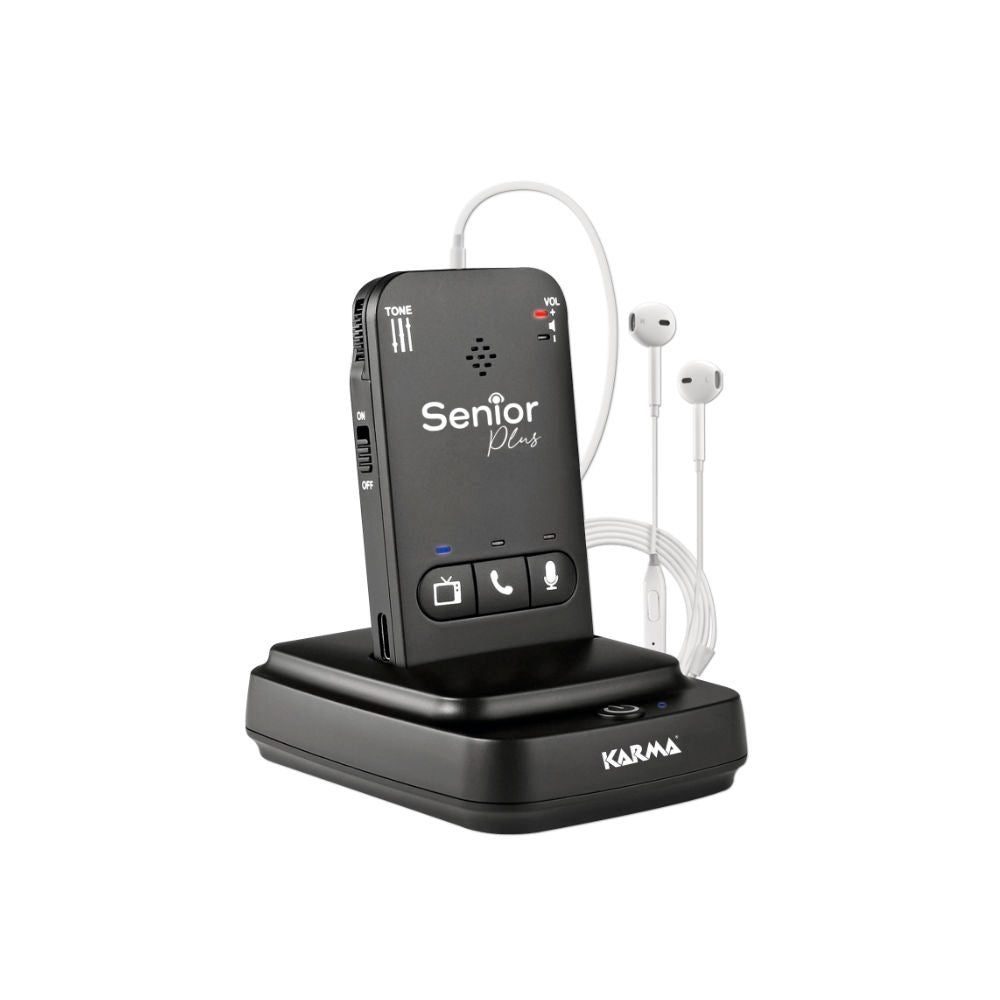 O SENIOR PLUS é um dispositivo de áudio inovador, especialmente concebido para pessoas seniores ou com dificuldades auditivas. Permite ouvir claramente a televisão ou qualquer outra fonte de áudio e, ao mesmo tempo, atender chamadas telefónicas sem se levantar do sofá. Representa a combinação perfeita entre tecnologia acessível e funcionalidade inteligente, oferecendo uma experiência de audição clara, personalizada e prática para utilizadores exigentes.