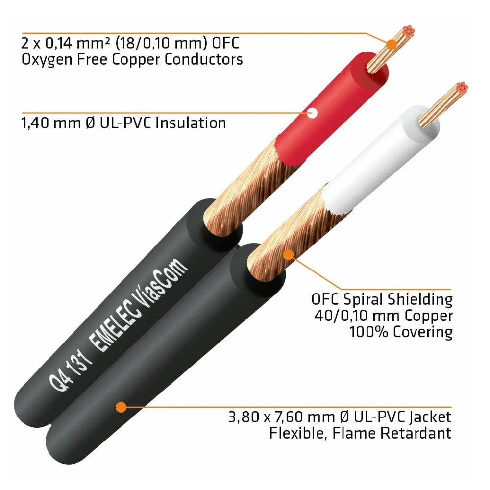 Condutores: Cobre OFC 26AWG (2 × 0,14 mm²)
