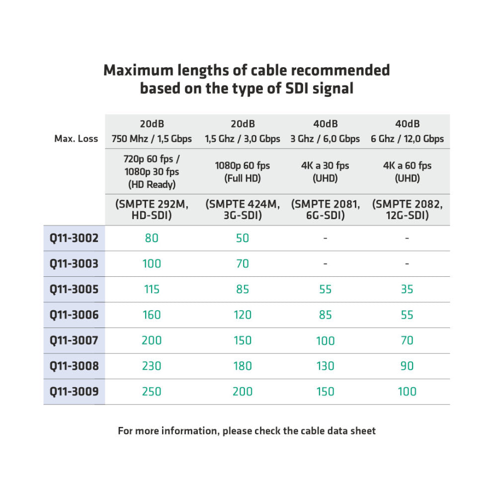 Ideal para transmissão de sinais HD-SDI, 3G-SDI e 4K-UHD