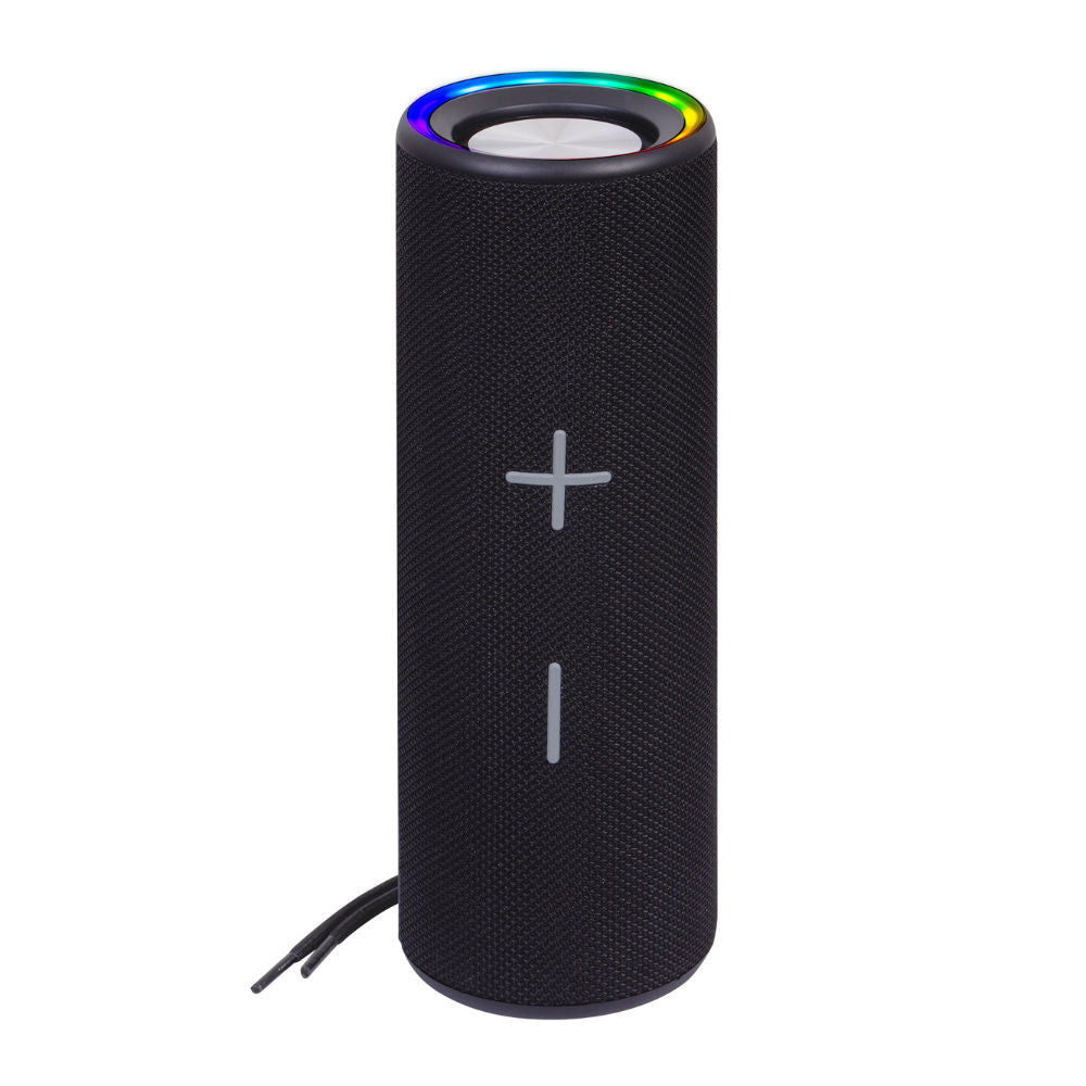 A coluna portátil Trevi XR 8A35 de 20 W é resistente à água, com uma classificação IPX4 que a torna utilizável mesmo em ambientes húmidos, e é alimentada por uma bateria de lítio, facilmente recarregável por TYPE-C.