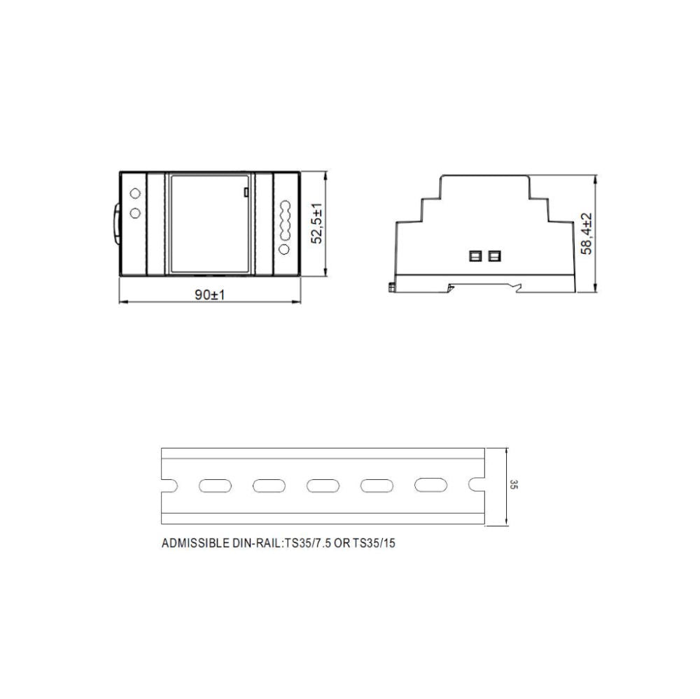 Graças ao design compacto e ao procedimento de clique fácil de usar, ele pode ser facilmente montado em todos os trilhos DIN padrão TH 35/7,5 e TH 35/15.