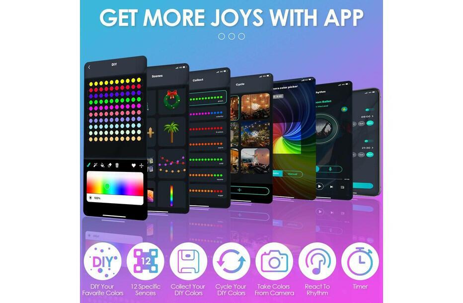 Transforme a sua decoração num espetáculo de luz e cor com o destaque especial para o controlo total pela aplicação móvel das Luzes de Natal LED RGB ZWOOS. Faça já a sua encomenda e experimente a verdadeira magia do Natal na ponta dos seus dedos!