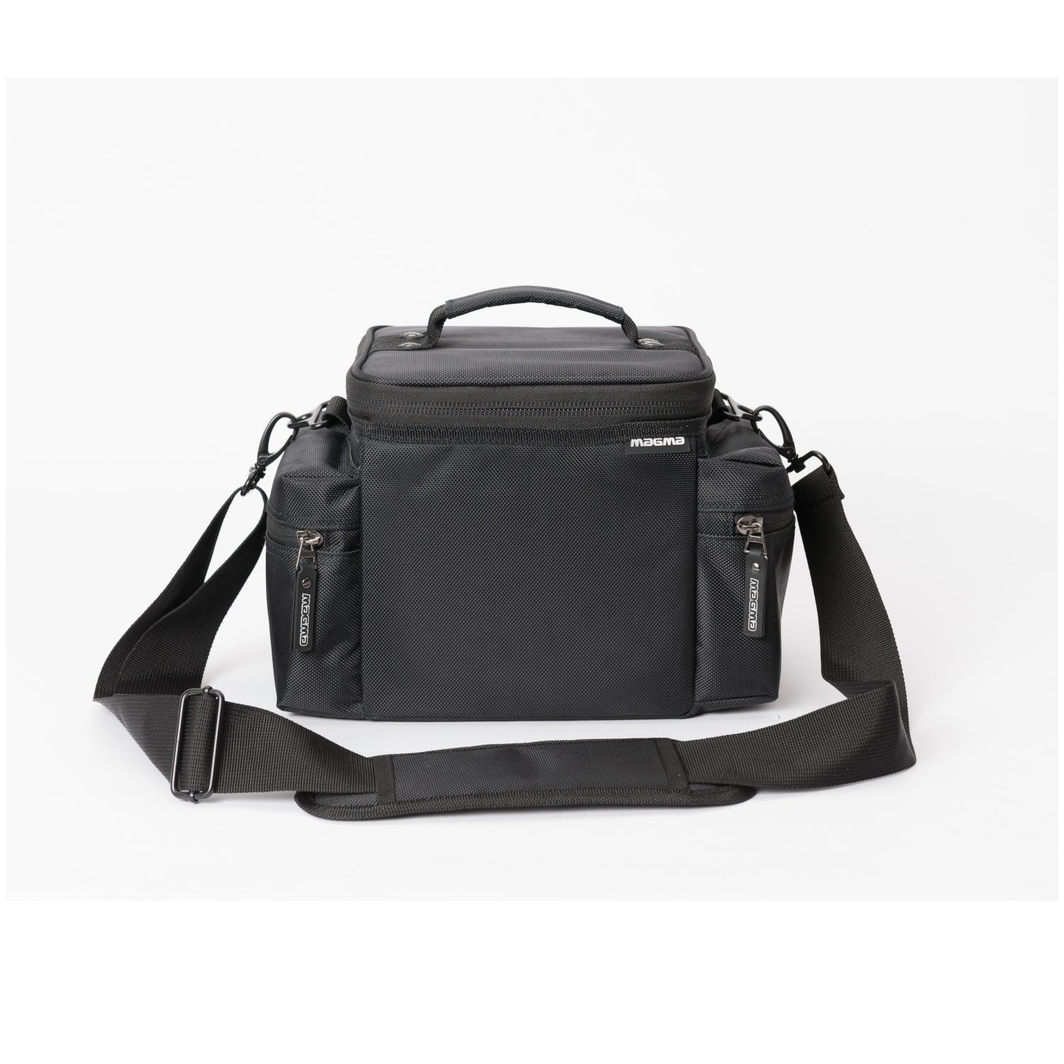 Bolsa com capacidade para 100 discos de 7 polegadas e acessórios. O seu corpo principal totalmente acolchoado apresenta um corpo reforçado em PVC semiduro, que proporciona uma excelente proteção e um ajuste estável mesmo na posição de pré-seleção dos discos. Acessórios adicionais, como fones de ouvido, uma caixa de agulha e 45 adaptadores podem ser facilmente armazenados nos dois bolsos laterais. Fabricado em nylon balístico 1680D durável e 100% impermeável, com laterais em PVC integradas para máxima proteção e um ajuste estável. Inclui um compartimento interno em malha com fecho e alça de ombro amovível. Medidas externas: 29 x 20 x 21 cm (incluindo bolsos laterais) Medidas internas: 19,5 x 18 x 19 cm. Peso: 0,9 kg. Acabamento exterior na cor preta e interior na cor bordô.