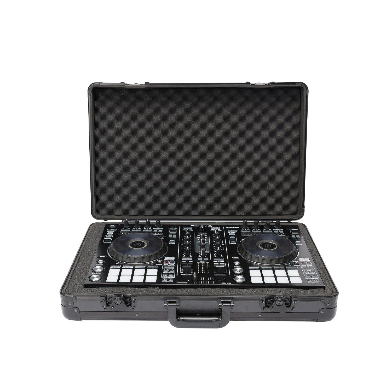 Caixa do controlador de tamanho grande. Construção em MDF laminado e perfis de alumínio anodizado, com fechaduras borboleta (pode ser fixado com cadeado). Interior totalmente acolchoado com espuma EVA de 5 mm e espuma em relevo de 3 cm de espessura na tampa. Inclui peças de espuma de 2,5 e 3,5 cm para criar compartimentos para controladores, misturadores de batalha, portáteis ou pequenos acessórios. Alça de transporte confortável e opção para adicionar uma correia. Medidas: exterior 41,5 x 63 x 16 cm, interior 37 x 60 x 11 cm. Peso: 4.7 kg