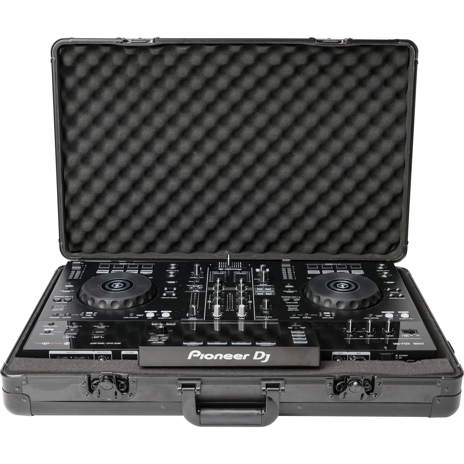 Construído em MDF laminado, perfis de alumínio anodizado e fechaduras borboleta (pode ser fixado com um cadeado). Interior totalmente acolchoado com espuma EVA de 5 mm e espuma em relevo de 3 cm de espessura na tampa. Inclui espumas removíveis de 2 camadas (2,5 e 3,5 cm) para criar compartimentos individuais para controladores, misturadores de batalha, portáteis ou pequenos acessórios. Inclui tampa removível. Alça de transporte confortável e opção para montar uma correia. Medidas: exterior 67 x 42 x 18 cm, interior 65 x 40 x 11 cm. Peso 5 kg