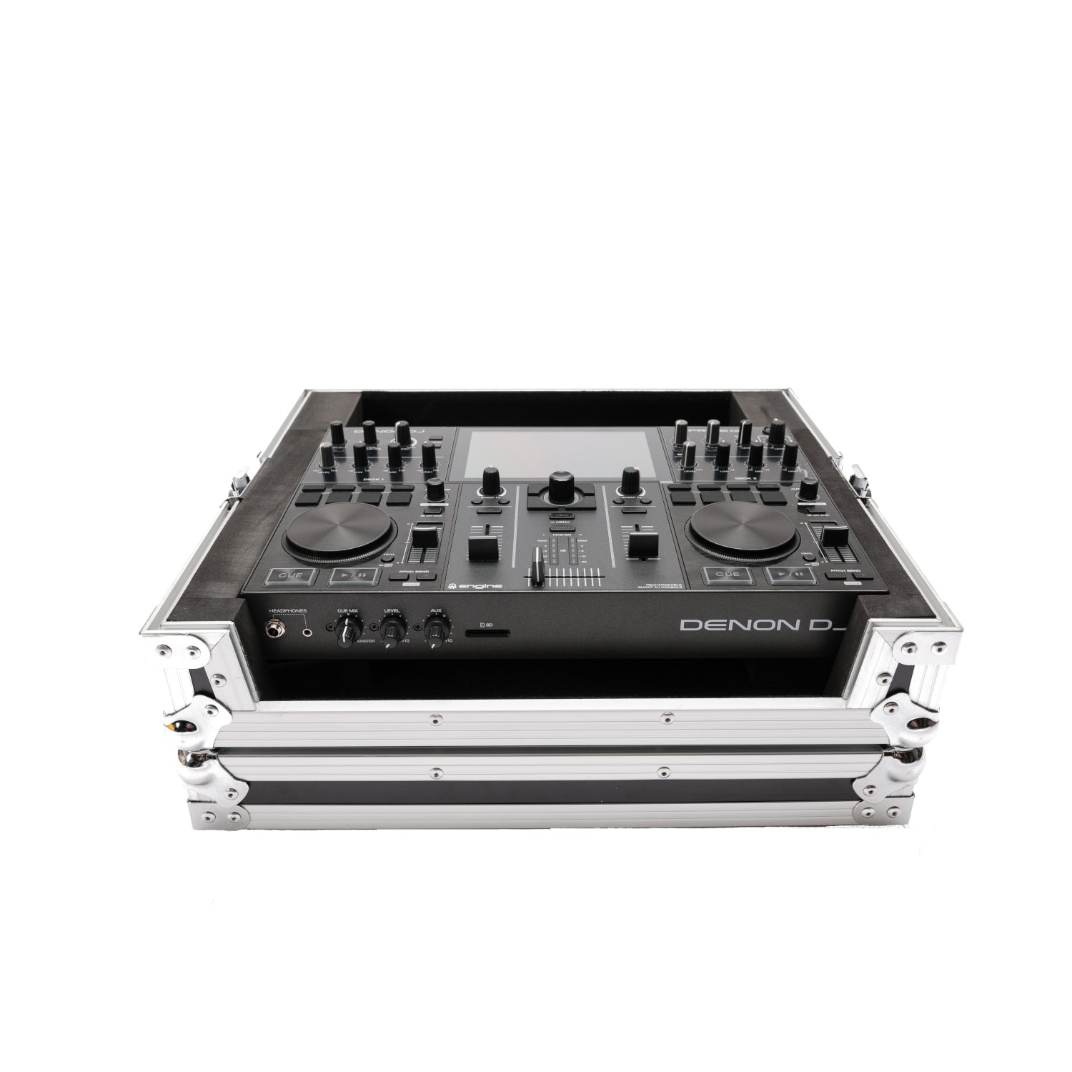 Caixa de transporte personalizada para Denon Prime Go. Feito de madeira laminada de vinil de 6 mm, perfis de alumínio... Leer más...