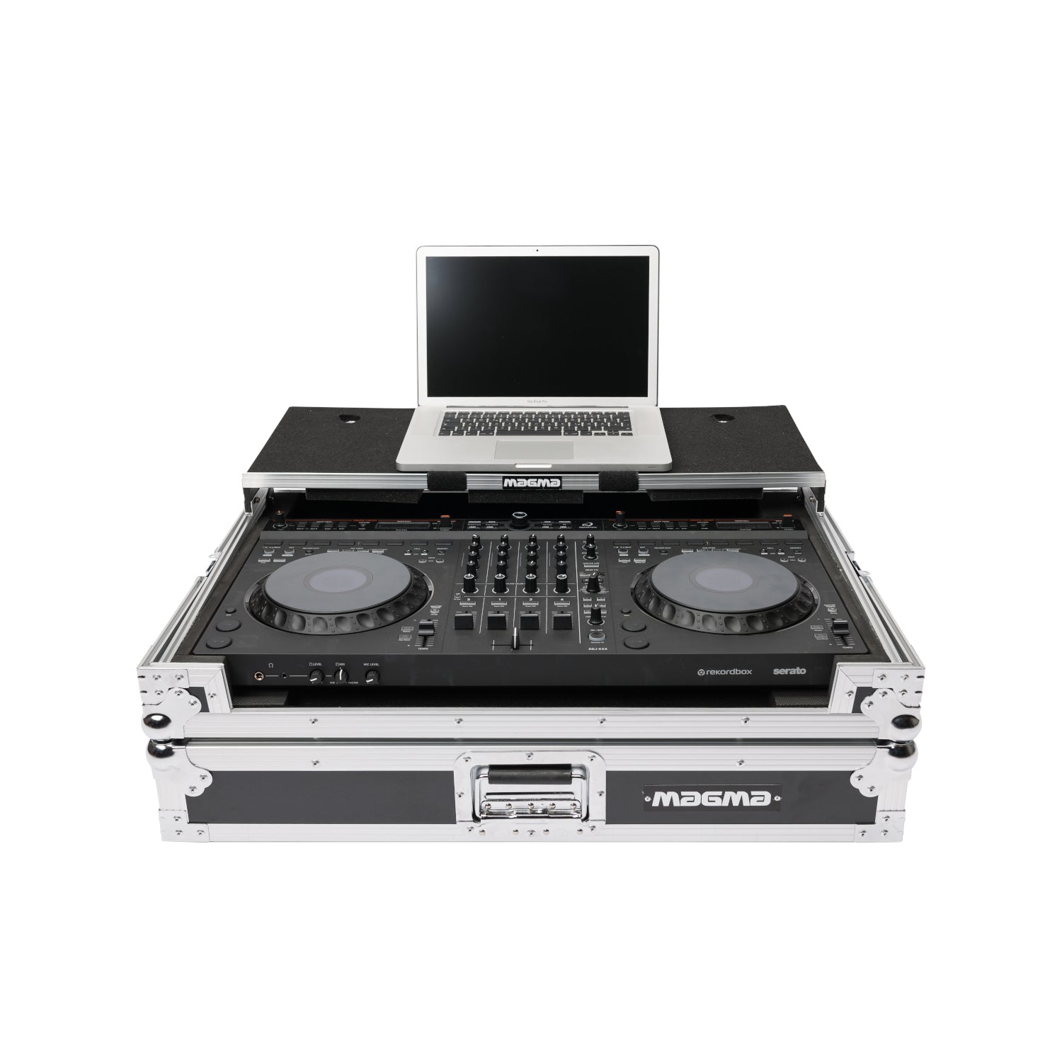 Feito à medida para transportar e proteger o controlador AlphaTheta DDJ-GRV6 DJ. Robusta construção em contraplacado laminado de vinil de 9 mm. Perfis de alumínio sólido e fechos com mola. Inclui plataforma deslizante para laptop (removível). Empilhamento seguro graças aos cantos de bola empilháveis. O interior totalmente acolchoado mantém o controlador bem protegido. Porta de acesso por cabo conveniente. 2 correias de fixação prendem o portátil durante o transporte (apenas MacBooks ou portáteis até 1,2" de espessura). Tampa/painel frontal amovível. Medidas externas: 83 x 56,5 x 23 cm. Medidas interiores: 71,6 x 36,4 x 4,8 cm (compartimento-controlador). Peso: 15 kg
