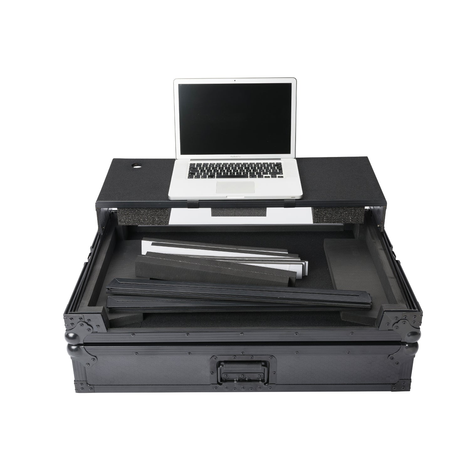 Caixa de transporte de alta resistência para controlador DJ. Inclui várias peças de espuma de vários tamanhos para acomodar vários modelos de controladores extra-grandes. Construído a partir de chapa laminada de 9 mm e do novo exterior hexagonal superdurável em favo de mel, também inclui cantos esféricos de aço resistentes, fechos de borboleta sólidos e uma pega retrátil forte. Graças ao teclado deslizante para portátil incorporado e à conveniente porta de acesso por cabo, a sua configuração está pronta para a ação em segundos. Medidas: exterior 82,5 x 55,5 x 23 cm, interior 72,5 x 40,5 x 4,5 cm. Peso: 16,6Kg.