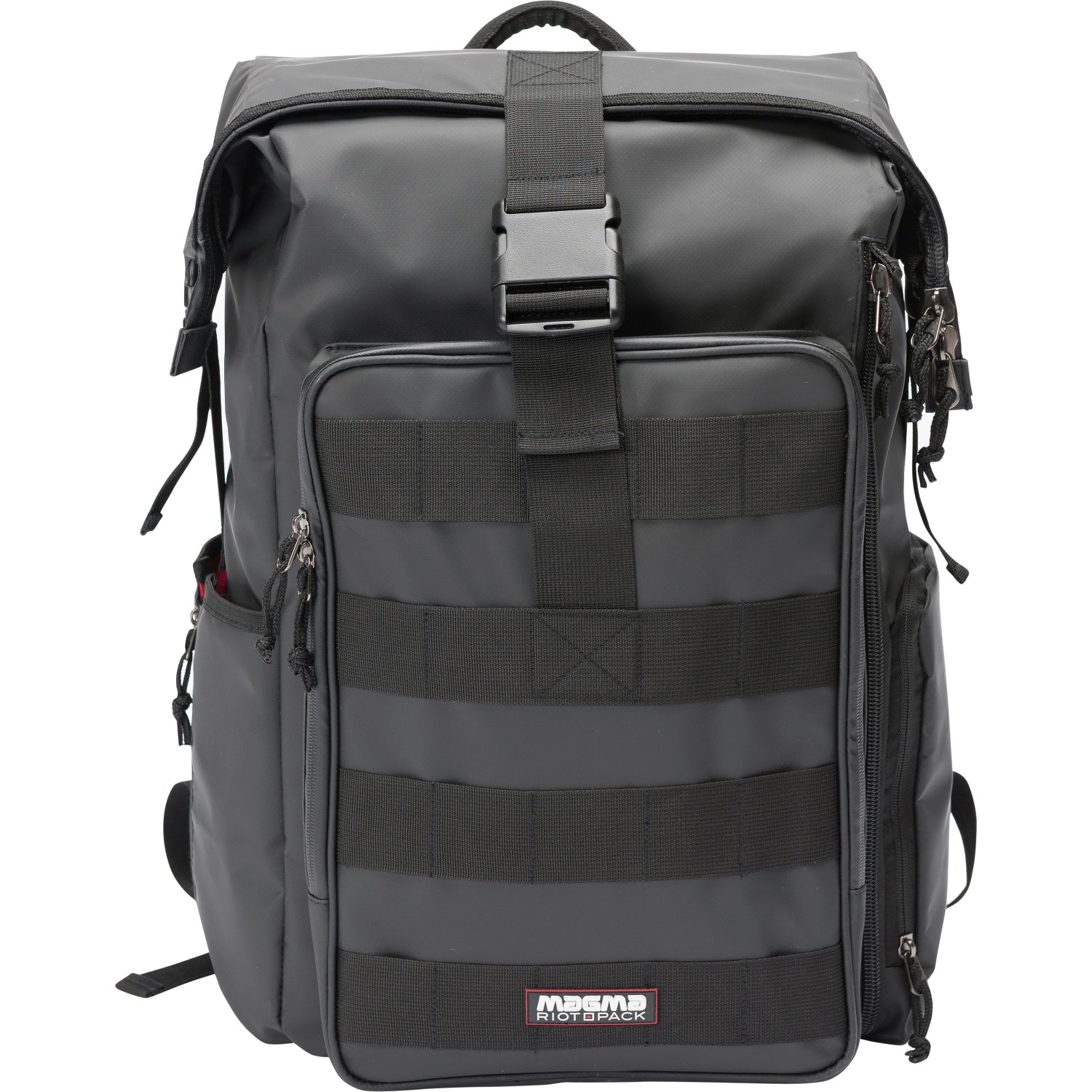 Construído em PVC 100% impermeável. Tecido de acolchoamento macio. Cabos revestidos em PVC repelente de água. Alças bloqueáveis nos compartimentos principal e do portátil. Ajuste flexível de altura através do fecho Rolltop. Compartimento principal que inclui espuma interior amovível na parte inferior e laterais. O painel de proteção incluído protege jog wheels e faders e a capota dobrável funciona como uma tampa adicional, por exemplo, ao armazenar mesas de batalha. O compartimento de entrada lateral separado proporciona um acesso rápido ao seu portátil (até 17''). Grande bolso acessório com bolsas internas com zíperes e organizadores. 1 bolso lateral de acesso rápido para pequenos acessórios. 1 bolso lateral para garrafas. Painel traseiro acolchoado com sistema de fluxo de ar, alças ergonômicas para mochila e fixação no peito. Cinta de carrinho destacável. Compatível com bagagem de mão (até 56 cm de altura). Compartimento para portátil de acesso lateral com fecho com puxadores à prova de água (até 17''). Medidas externas: 49-65 x 38 x 26 cm. Medidas interiores: 47-56 x 32 x 20 cm. Peso: 2,4 kg. Cor: preto/vermelho.