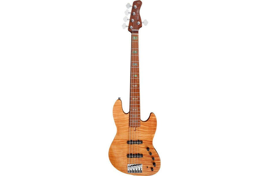 Marcus Miller bajo 2ª generación. 5 pistas Cuerpo: Fresno + Tapa blanda de arce + Chapa flameada. Forma: Nuevo tipo Marcus Miller Jazz. Color del cuerpo: Cuerpo de ceniza - NT, TS. Mastil: 1 pieza de arce (mastil de arce tostado / satinado). Forma: forma de C. Escala: 34''. Unión de mástil: placa cuadrada de acero de 4 pernos. Diapasón (Bordes Enrollados): Arco de llama. Tono de radio: 9.5''. Trastes: 2.4 medio. Cejuela : 5 Cuerdas – Hueso Natural 46mm ancho. Incrustaciones: bloque de abulón. Pastillas : Marcus Premium-J Revolution Set. Electrónica: Marcus Heritage-3 con control de frecuencia media. Controles: Volumen / Tono (potenciómetro doble) Pickup Blender Agudos Frecuencia media / media (potenciómetro dual) Graves, Mini Toggle (Activo / Pasivo). Potenciómetros: Aluminio negro moderno. Puente: Marcus Miller Heavy Mass Standard. Clavijeros : Premium Open-Gear. Herrajes: cromo. Striker: Golpeador transparente. Acabado: Natural.
