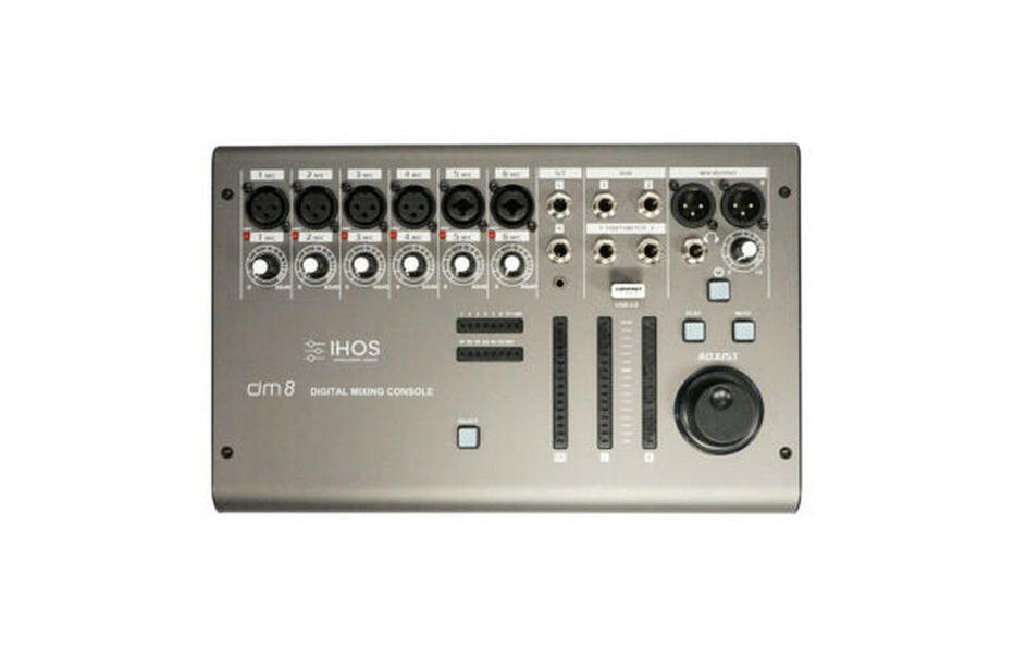 Consola de mistura digital, 8 canais - 6 entradas de microfone, 1 entradas stereo, 2 saídas XLR, 2 bus, 4 módulos de efeitos, 2 reverb, 2 delay, conexão WIFI ao módulo sem fios USB, 1 interface LAN