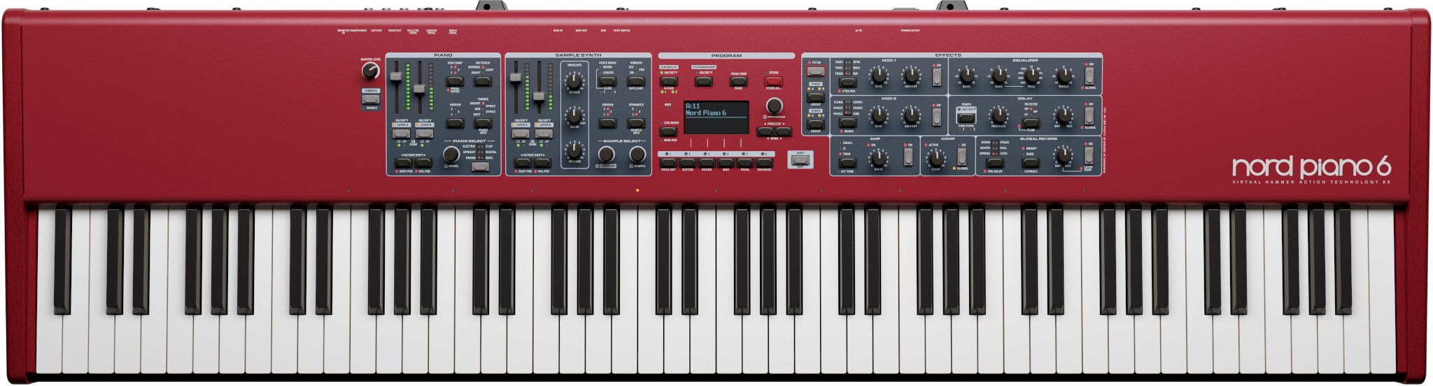 A mais recente geração da série Nord Piano apresenta um novo design de painel com faders de LED, camadas duplas para Piano e Synth com efeitos independentes e um teclado premium com Triple Sensor. Combinando excelente portabilidade e sons de classe mundial, o Nord Piano 6 oferece grande flexibilidade para performance e criação sonora.