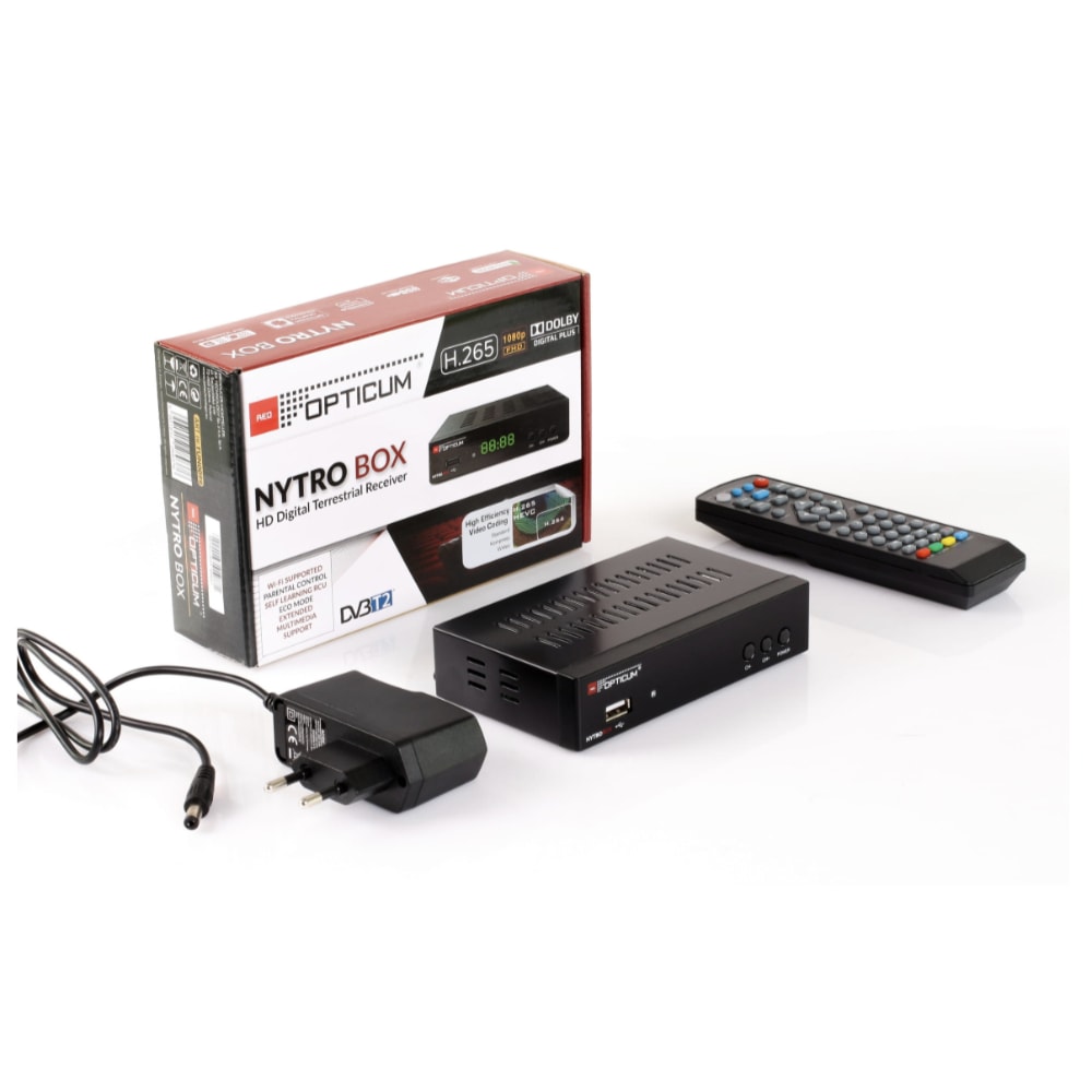 Receptor de televisão digital terrestre. Permite receber canais em alta e baixa resolução (HD e SD).