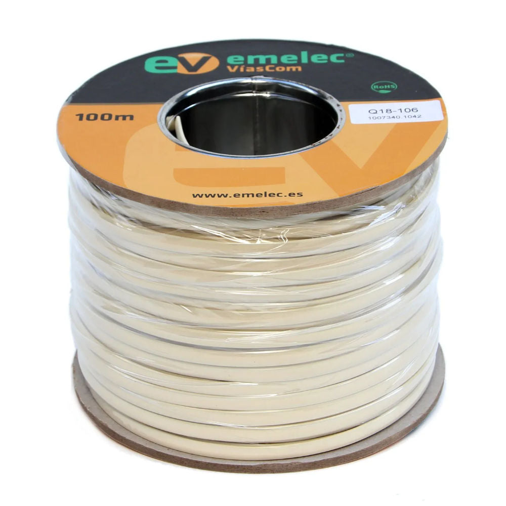 Cabo telefónico plano com 6 vias, concebido para redes de comunicação interior com elevada fiabilidade e flexibilidade. Ideal para instalações em ambientes residenciais, comerciais e industriais, assegura ligações estáveis entre terminais e bases de acesso. Fabricado com cobre OFC e materiais de isolamento de alto desempenho, este cabo garante uma transmissão de sinal com baixa perda e resistência superior ao calor e à chama.