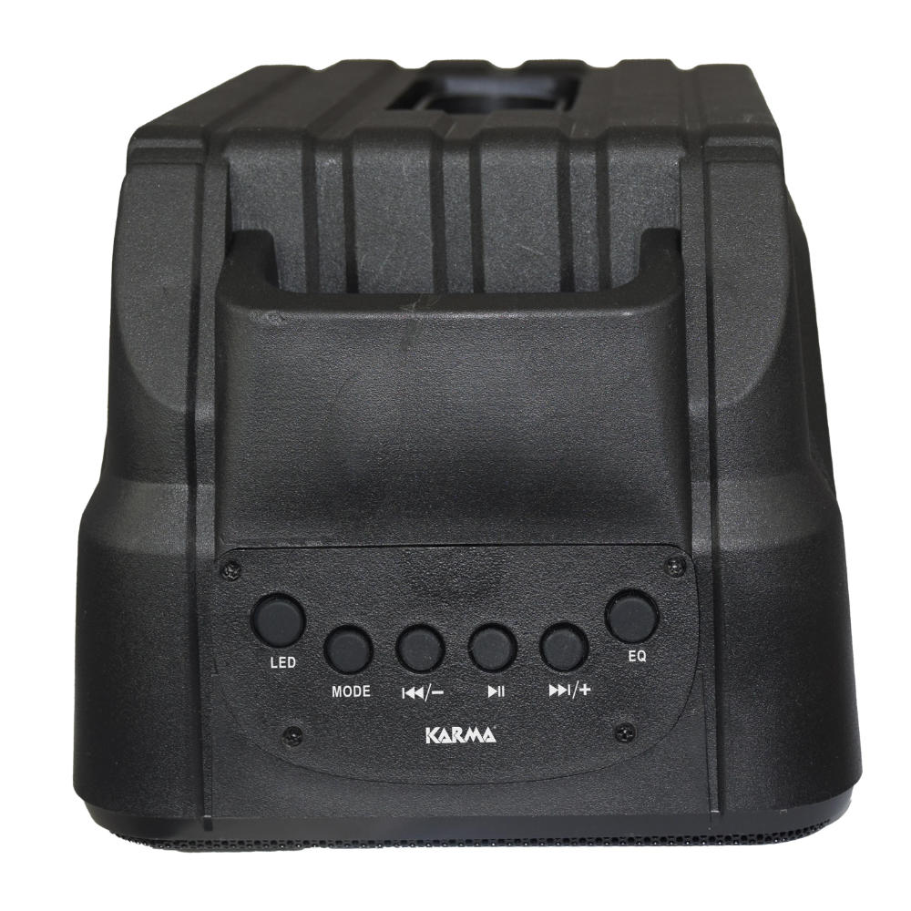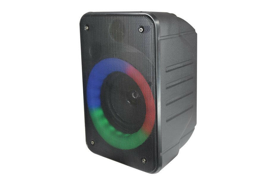 Coluna portatíl amplificada com receptor bluetooth 5.0, leitor de MP3 via USB ou cartões microSD, entrada de microfone e entrada AUX. Possui sistema LRCL (Led Round Circular Light) que gera um efeito de iluminação de alto impacto (que pode ser desativado). A bateria recarregável USB garante horas de funcionamento.