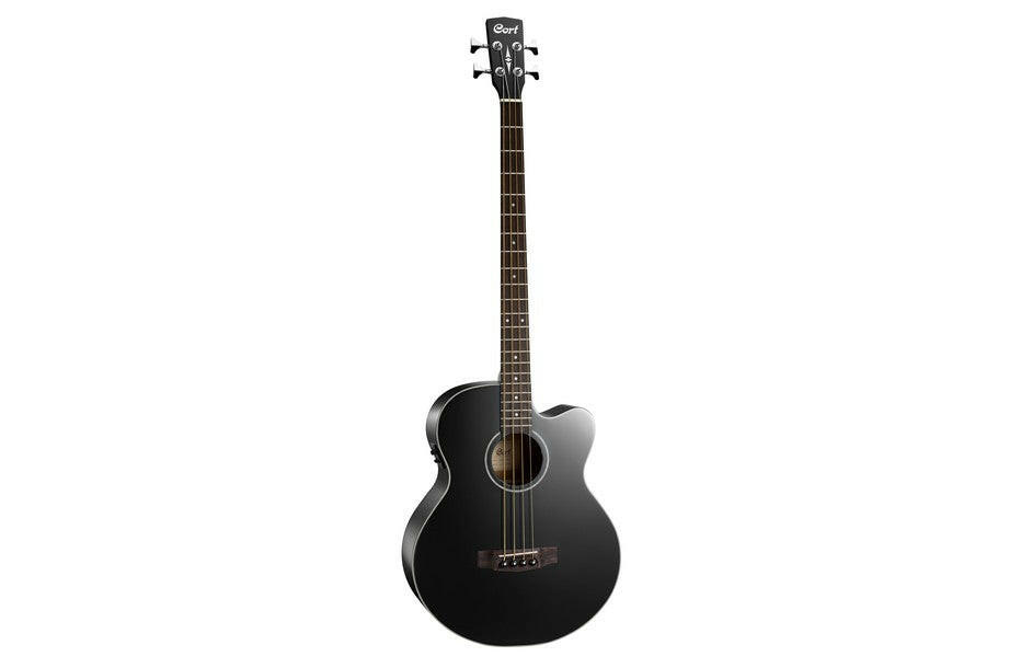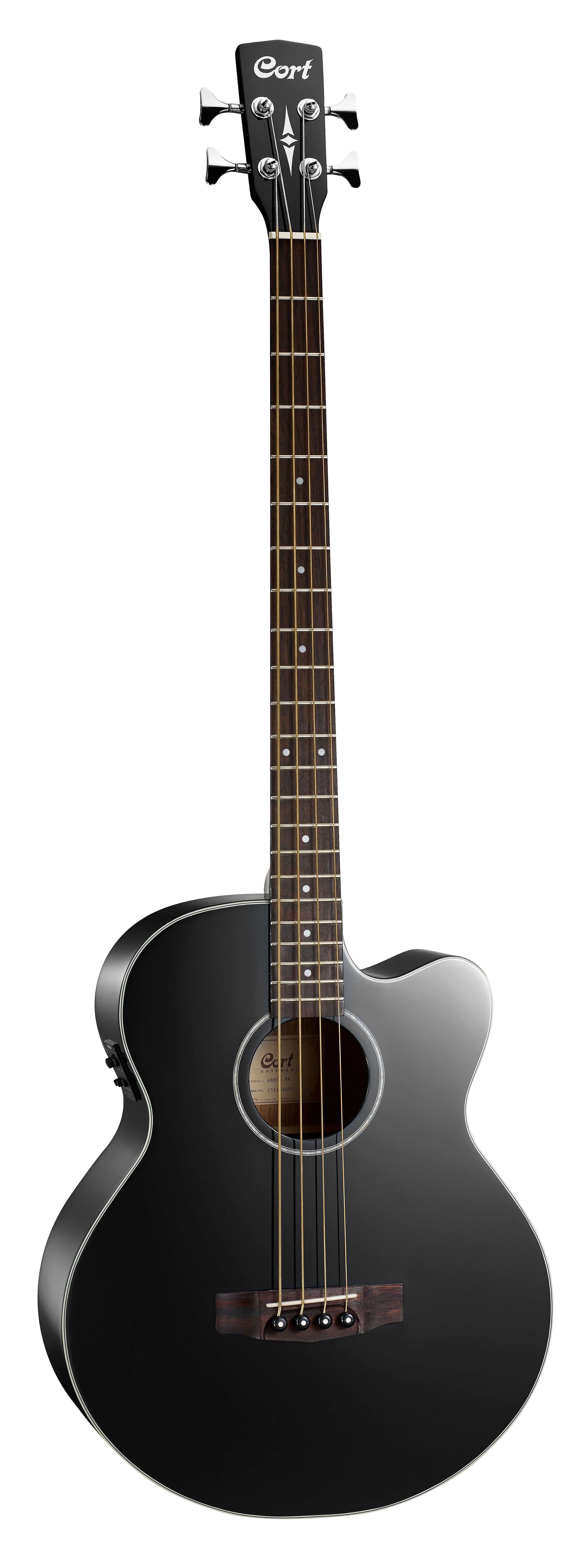 SÉRIE ACOUSTIC BASS CORT Baixo acústico com pré-amplificador AB850F BK W/BAG. O AB850F apresenta tampo em Spruce, bordas e laterais em Cao.