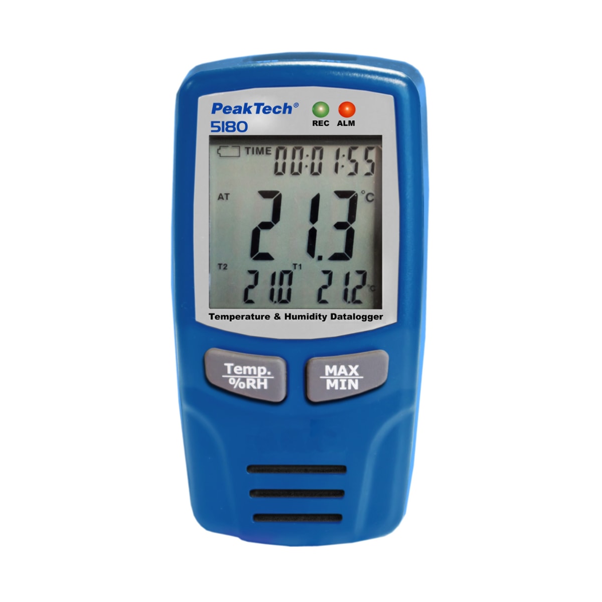 Este novo registrador de dados para medições de temperatura, humidade do ar e temperatura em duas sondas Tipo K convence com um longo tempo de registro e os quatro valores de medição registrados simultaneamente com registo de data e hora exatas.