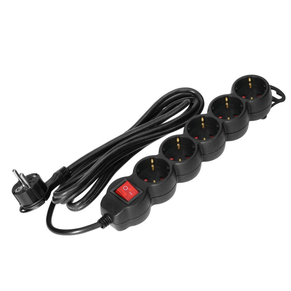 Extensão Eléctrica 5 Vias Shucko 3metros c/ Interruptor - Preto