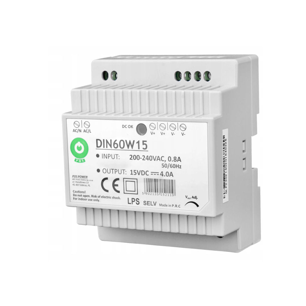 Escolha a nossa Fonte de Alimentação Calha DIN AC230V/DC15V 4A 60W IP30 para garantir um fornecimento de energia estável e seguro para seus sistemas.