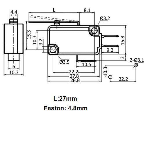 Interruptor SPDT3P 2 Posições ON/ON 10A - 230V - 27mm