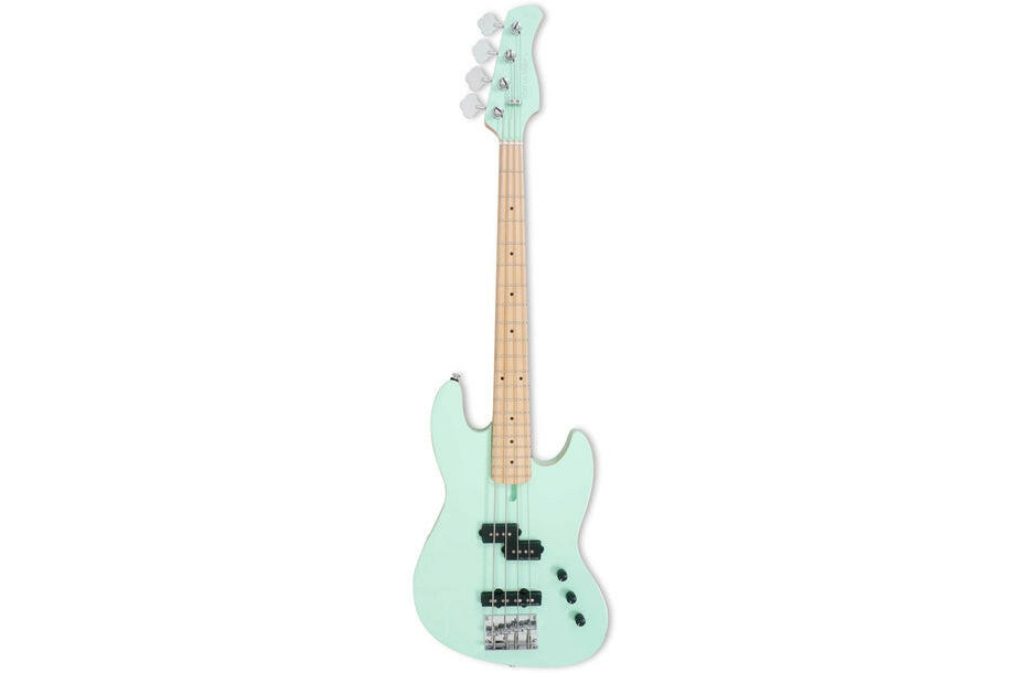 'Baixo Marcus Miller. Corpo da 2ª geração: amieiro americano. Forma: Marcus Miller Small Jazz Type (corpo esculpido fino). Braço: 1 pedaço de bordo. Forma: Forma C. Escala: 30'' (escala curta). Material do braço: Maple (bordas laminadas). Raio da escala: 9,5 ''. Trastes: Médio de 2,4 mm. Porca: Porca de osso, 38 mm de largura. vinculativo. Nenhum. Incrustações: Ponto BK. Junta do pescoço: placa quadrada de aço de 4 parafusos. Captadores: Marcus Super-PJ Revolution Set. Eletrônicos: Volume passivo e controle de tom. Controles: Volume(Pescoço PU), Volume(Ponte PU), Tom(Master). Potenciômetros: Alumínio preto moderno. Ponte: Marcus Miller Vintage-S. Tuners: Premium Open-Gear. Ferragens: Cromado. Batedor: Nenhum. Acabamento de menta. 'má embalagem Item reembalado