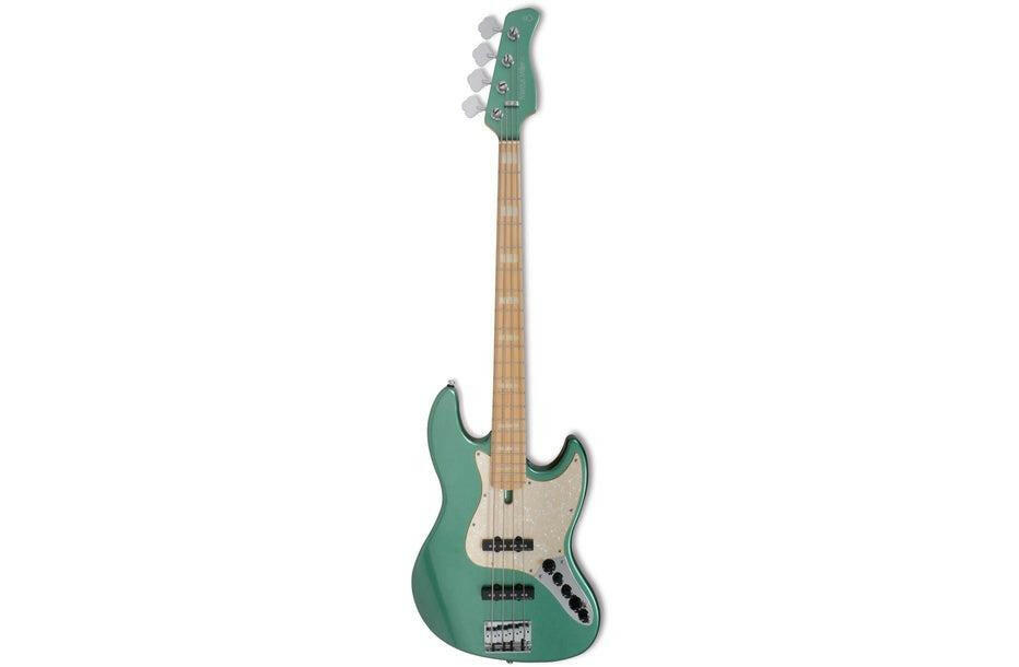 Baixo Marcus Miller. Corpo da 2ª Geração: Ash. Forma: Novo Marcus Miller Jazz Type. Braço: 1 pedaço de bordo (cetim). Forma: Forma de C. Escala: 34''. Escala (bordas laminadas): Maple. Raio da escala: 9,5 ''. Trastes: 2,4 médios. Nut: 4 String – Natural Bone 38mm de largura. Encadernação: 1 dobra Ivory. Incrustações: WH Pearloid Block. Junta do pescoço: placa quadrada de aço de 4 parafusos. Captadores: Marcus Super-J Revolution Set. Eletrônica: Marcus Heritage-3 com controle de frequência média. Controles: Volume/Tone(Dual Pot) Pickup Blender Treble Middle/Middle Frequency (Dual Pot) Bass, Mini Toggle(Active/Passive). Potes: Plástico Tipo Jazz na cor Preto. Ponte: Marcus Miller Heavy Mass Standard. Tuning Machines: Premium Open-Gear. Ferragens : Cromado. Pickguard: Ivory Pearl. Sherwood Verde.