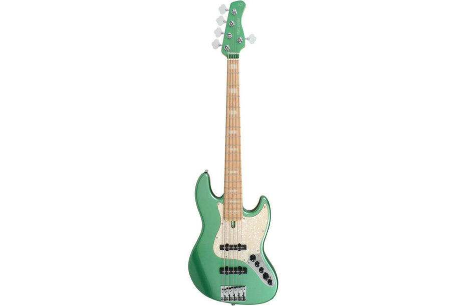 Baixo Marcus Miller. 2ª Geração 5 cordas. Corpo: Cinzas. Forma: Novo Marcus Miller Jazz Type. Braço: 1 pedaço de bordo (cetim). Forma: Forma de C. Escala: 34''. Escala (bordas laminadas): Maple. Raio da escala: 9,5 ''. Trastes: 2,4 médios. Nut: 5 String – Natural Bone 46mm de largura. Encadernação: 1 dobra Ivory. Incrustações: WH Pearloid Block. Junta do pescoço: placa quadrada de aço de 4 parafusos. Captadores: Marcus Super-J Revolution Set. Eletrônica: Marcus Heritage-3 com controle de frequência média. Controles: Volume/Tone(Dual Pot) Pickup Blender Treble Middle/Middle Frequency (Dual Pot) Bass, Mini Toggle(Active/Passive). Potes: Plástico Tipo Jazz na cor Preto. Ponte: Marcus Miller Heavy Mass Standard. Tuning Machines: Premium Open-Gear. Ferragens : Cromado. Pickguard: Ivory Pearl. Acabamento verde Sherwood.