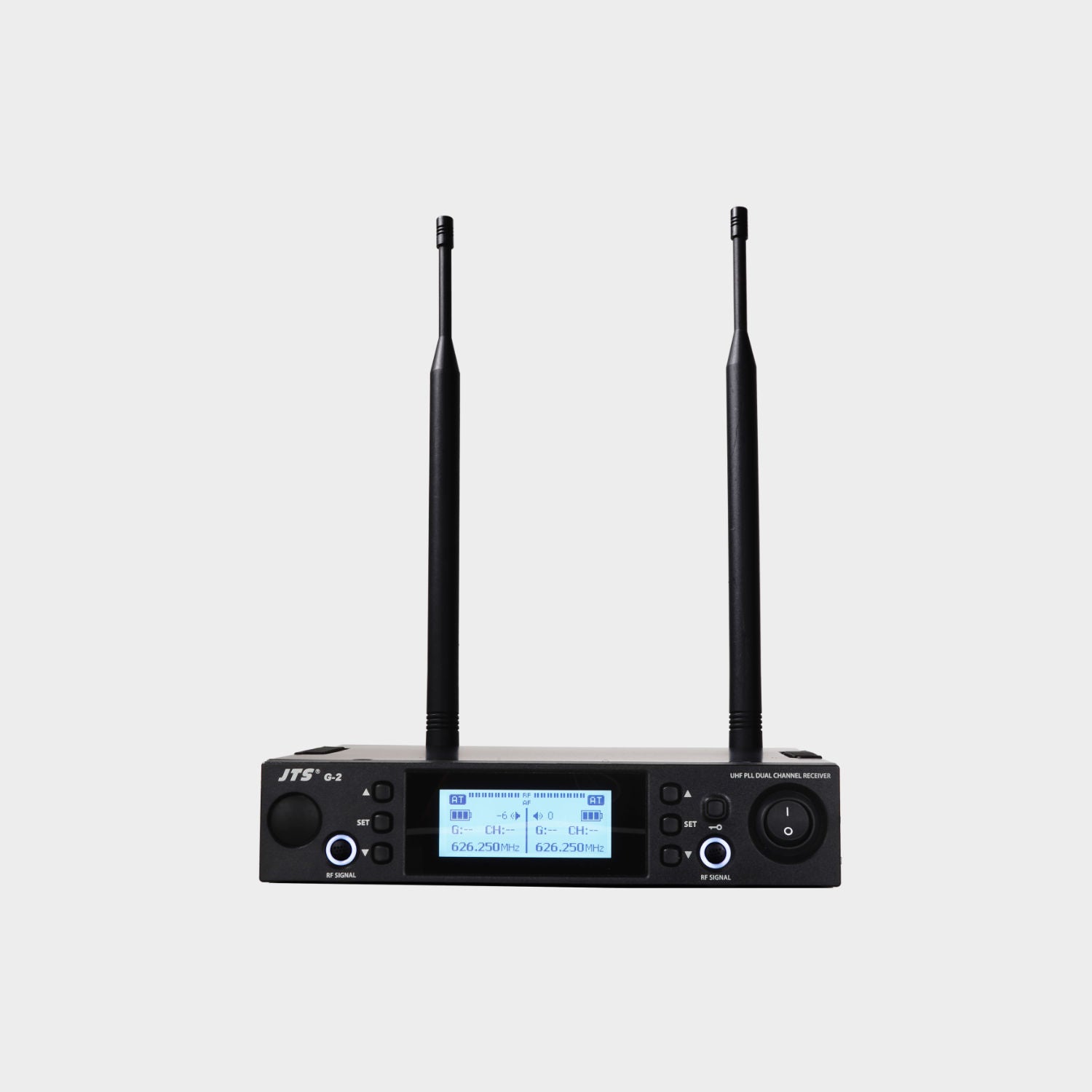 O sistema G-2 da JTS combina mais de 40 anos de experiência no fabrico de microfones com a mais recente tecnologia sem fios de 2.ª geração, oferecendo um desempenho excecional em aplicações ao vivo, discursos ou eventos ao ar livre. Com antena BNC destacável, circuito de baixo ruído e funcionalidades DSP avançadas, o G-2 adapta-se a qualquer cenário profissional, garantindo áudio de alta qualidade e estabilidade mesmo em ambientes RF congestionados.