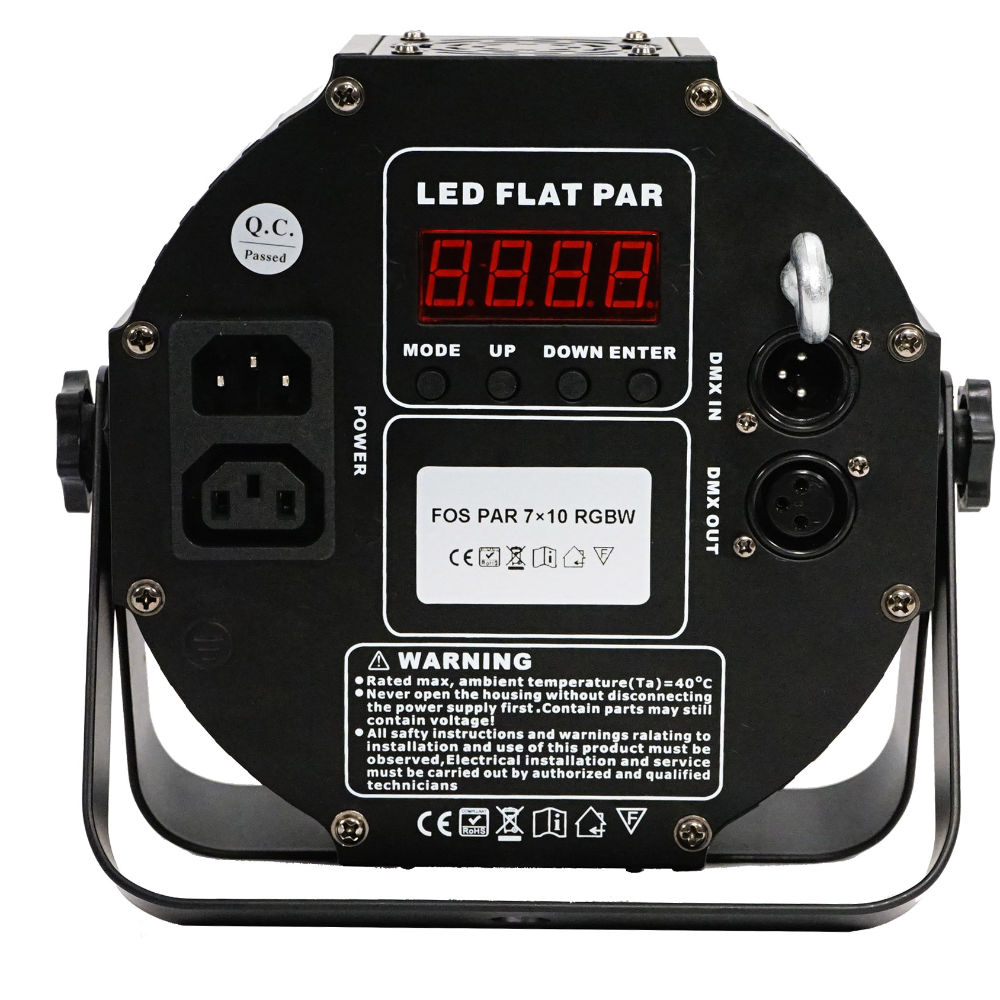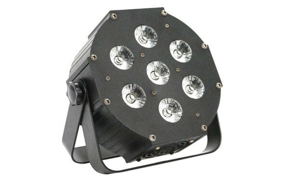 Projector Flat Par Led com caixa em alumínio, com 7 leds RGBW de 10W cada.7x 10W RGBWAbertura: 40°Dimmer: 0-100%StrobeDMX 512Modos:... Ler mais