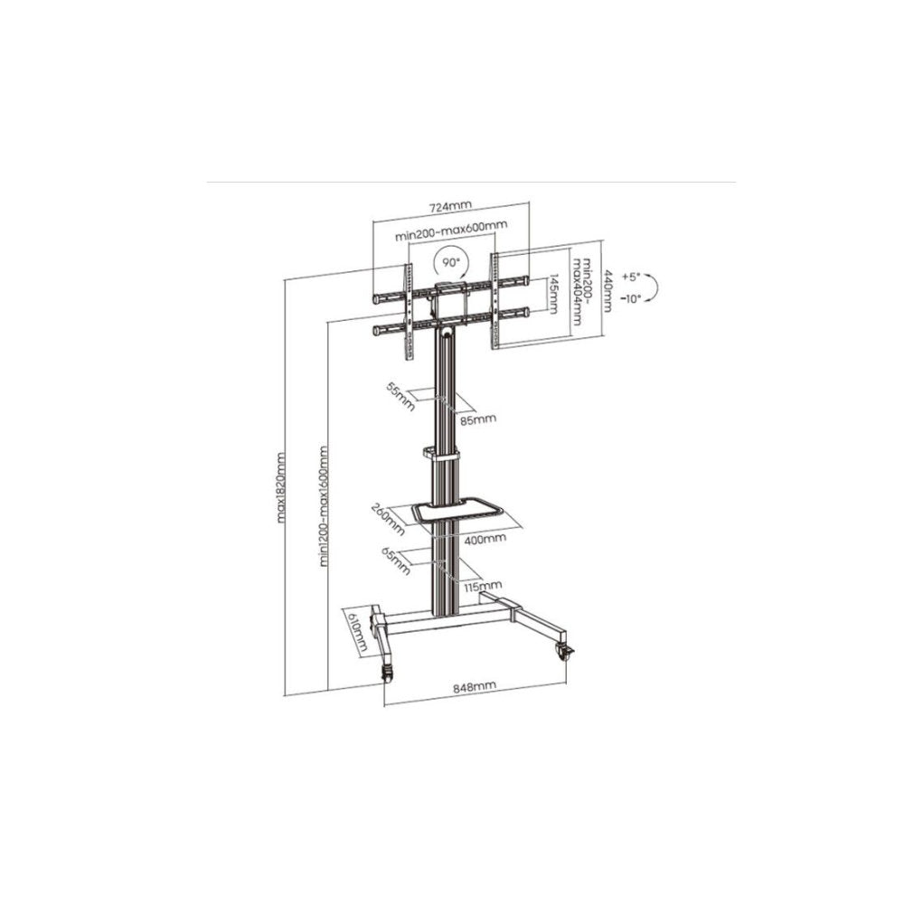 Descrição Rotação para posição vertical! Design elegante, técnico e funcional para proporcionar uma solução de apresentação sólida para a maioria dos televisores de ecrã plano LED e LCD. Os suportes de TV permitem um ajuste de altura sem esforço para corresponder a diferentes necessidades de visualização em qualquer altura. A inclinação livre permite um ajuste fácil do ângulo e reduz o brilho das luzes ou janelas para obter o conforto de visualização ideal. A base sólida proporciona segurança adicional ao eliminar a possibilidade de tropeçar e garante um desempenho fiável durante anos de utilização. A gestão interna dos cabos oculta os fios para manter uma aparência desordenada. Ideal para conferências, exposições públicas ou outras apresentações profissionaisEspecificações Regulação da altura VESA: 600x400 Capacidade de carga: 50Kg Altura ajustável da prateleira da câmara/prateleira de DVD para a posição desejada Design de inclinação livre para vários ângulos de visualização do monitor Rodas para mobilidade, bloqueáveis para segurança Rotação de 90° para segurar facilmente o ecrã na orientação vertical ou horizontal Prateleira para componentes DVD/AV Rotação do ecrã: 90 Compatível com as normas VESA Gestão de cabos incorporadaVIDEO