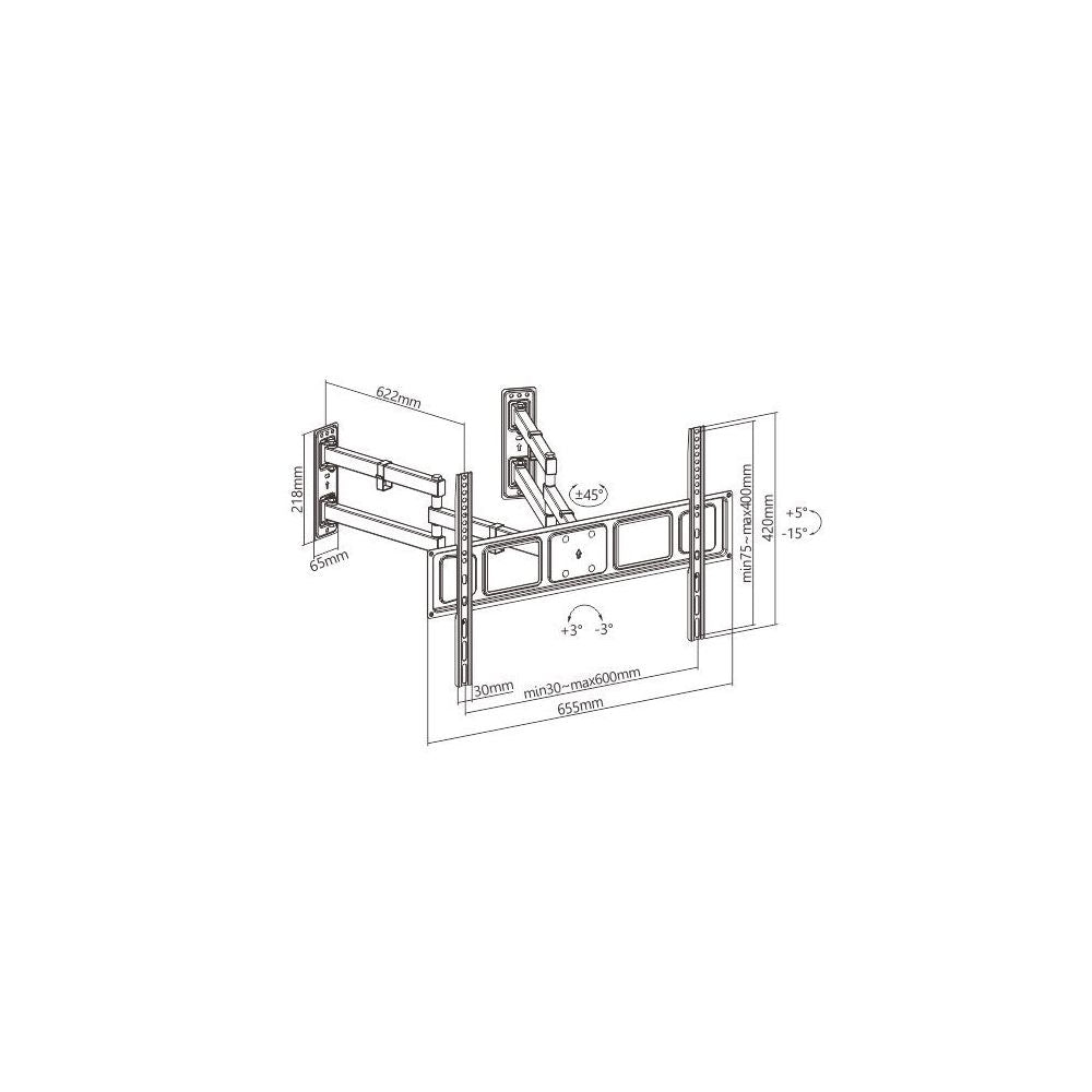 Adapta-se à maioria dos televisores de 32'' a 70'' com peso até 45 kg. Com braços divididos, pode ser facilmente instalado em paredes planas ou nos cantos da casa. Uma gama completa de movimentos dá ao utilizador amplas opções de visualização, e a ampla capacidade de rotação, inclinação e extensão coloca o televisor em praticamente qualquer lugar.